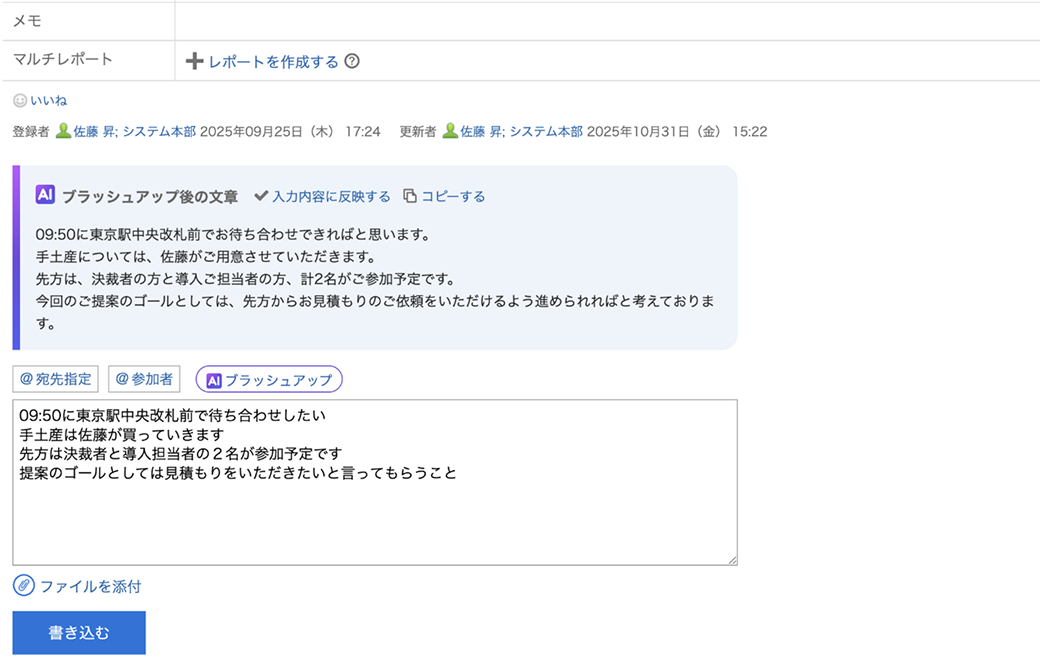 スケジュールのコメントで伝えたい内容を分かりやすくブラッシュアップしてくれる機能です。