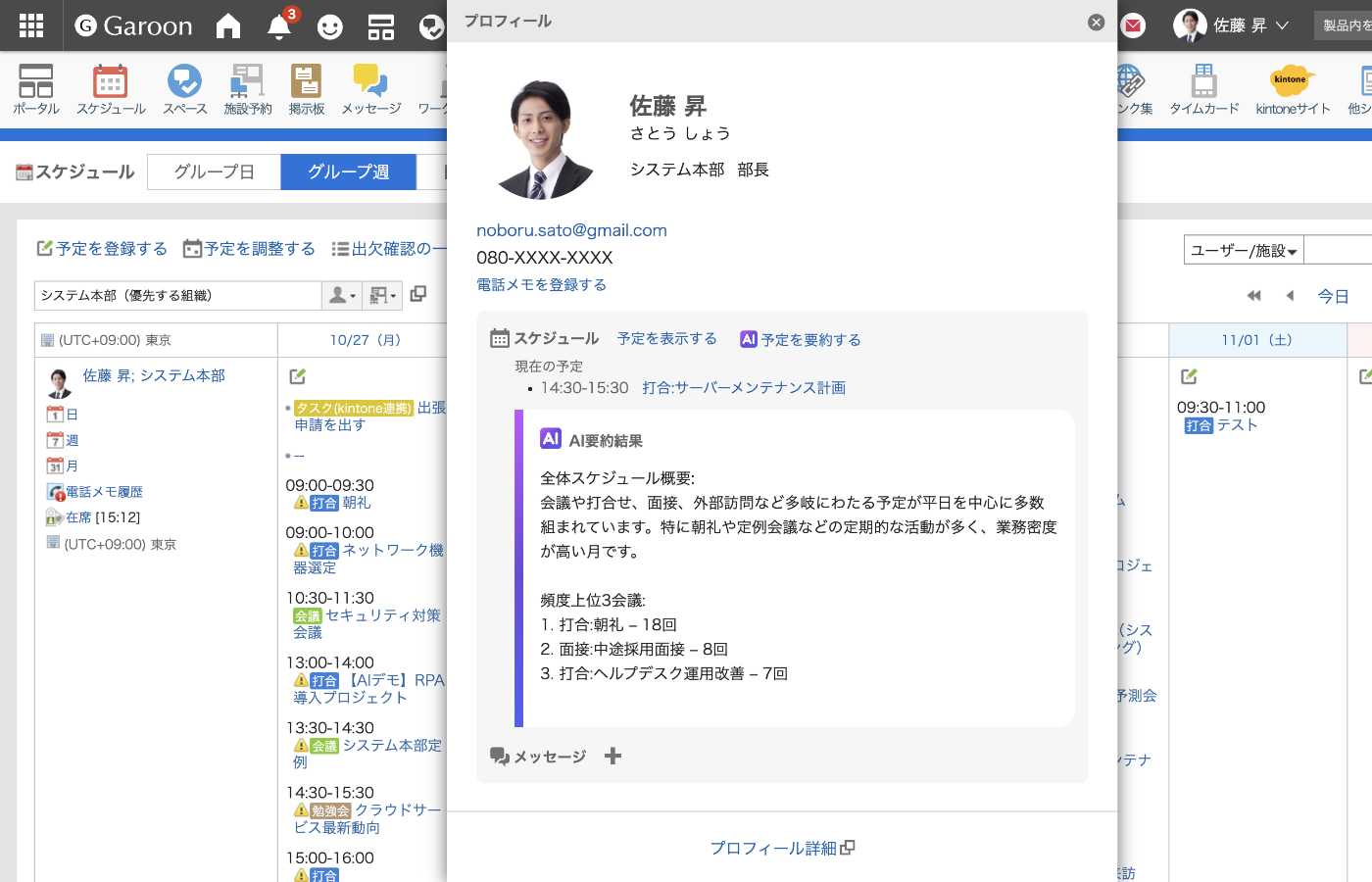 ユーザーごとのスケジュールをかんたんに要約してくれる機能です。